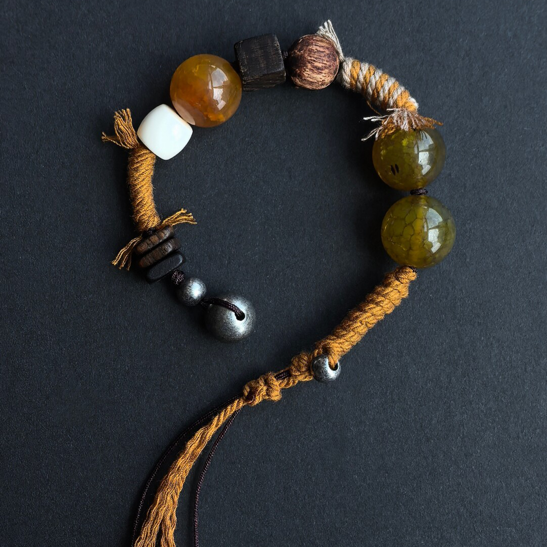 Regular price $499.00Sale price $499.00 Regular price $418.00Unit price / perThis "Nile Wealth Bracelet" features yak bone, bodhi seeds, and agate (Earth elements) as its core, accented with lapis lazuli (Metal) and silver ornaments (Metal), all...