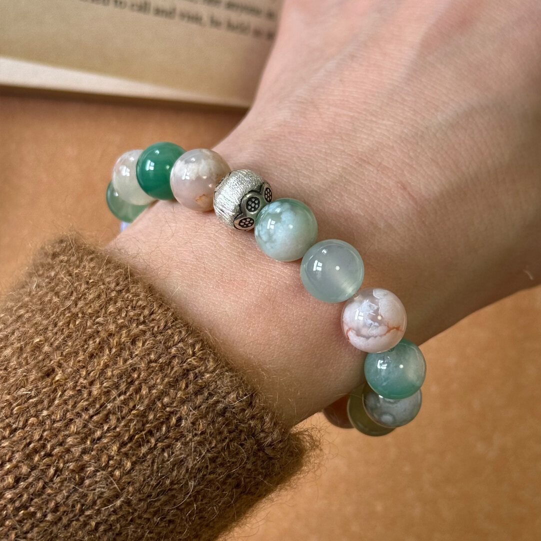 Pink & green marble beads → Like a spring garden, it brings growth, calmness, and gentle energy.