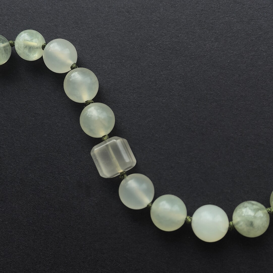 Round prehnite + square jade = harmony between heaven (round) and earth (square). Â